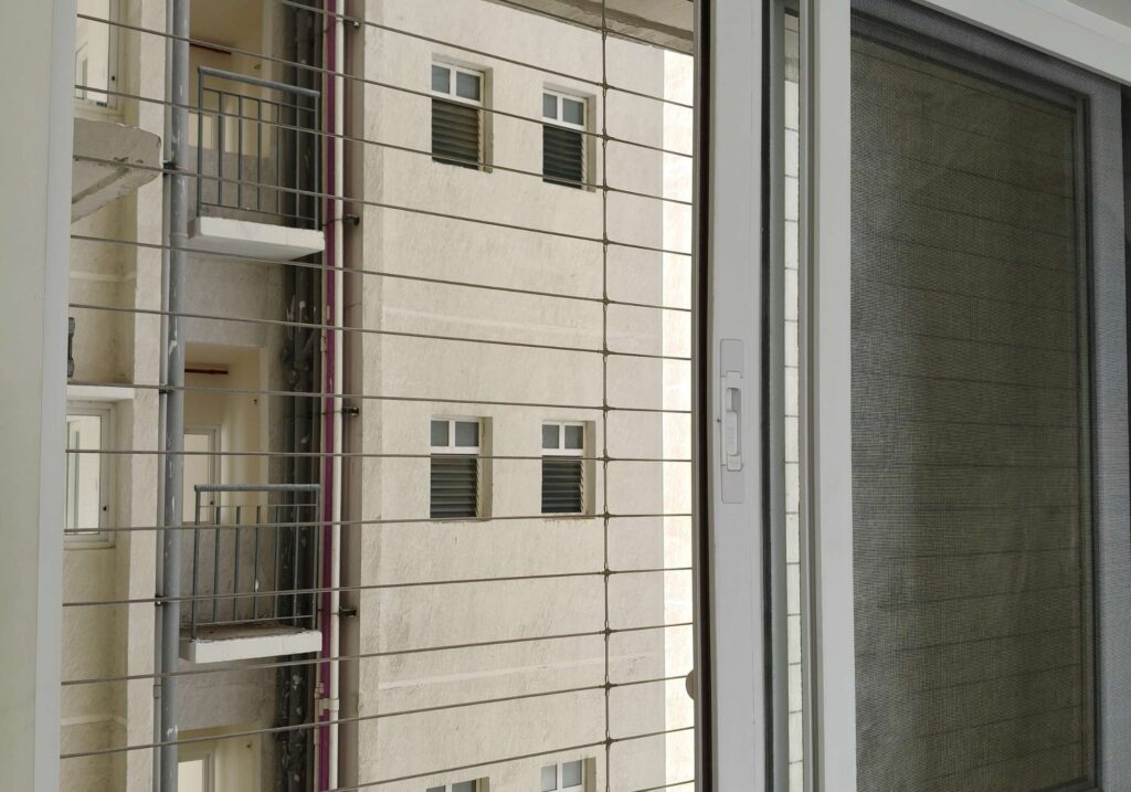 Safe & stylish Balcony solutions by Shushant Balcony Invisible Grill- Bird Netting Soultions. Premium invisible grills, pigeon nets & safety nets in Hyderabad, Bangalore, Chennai & more.